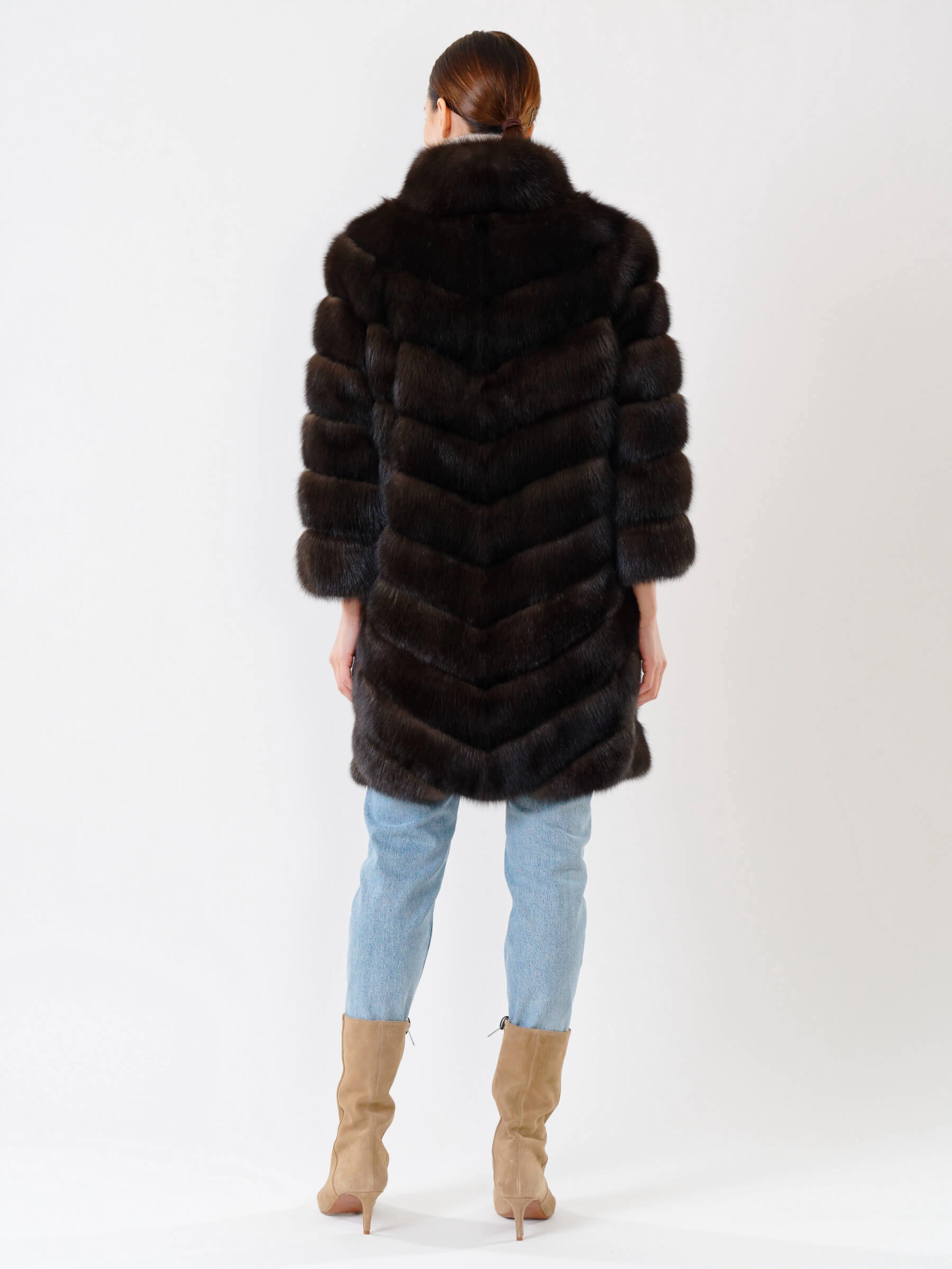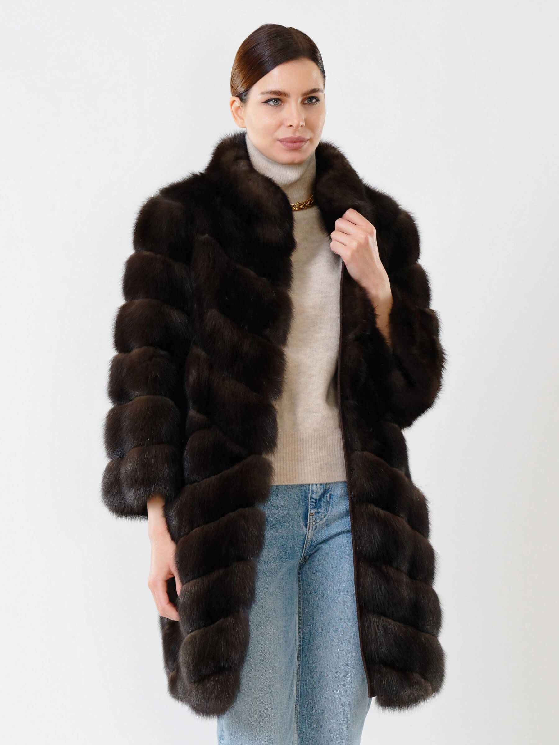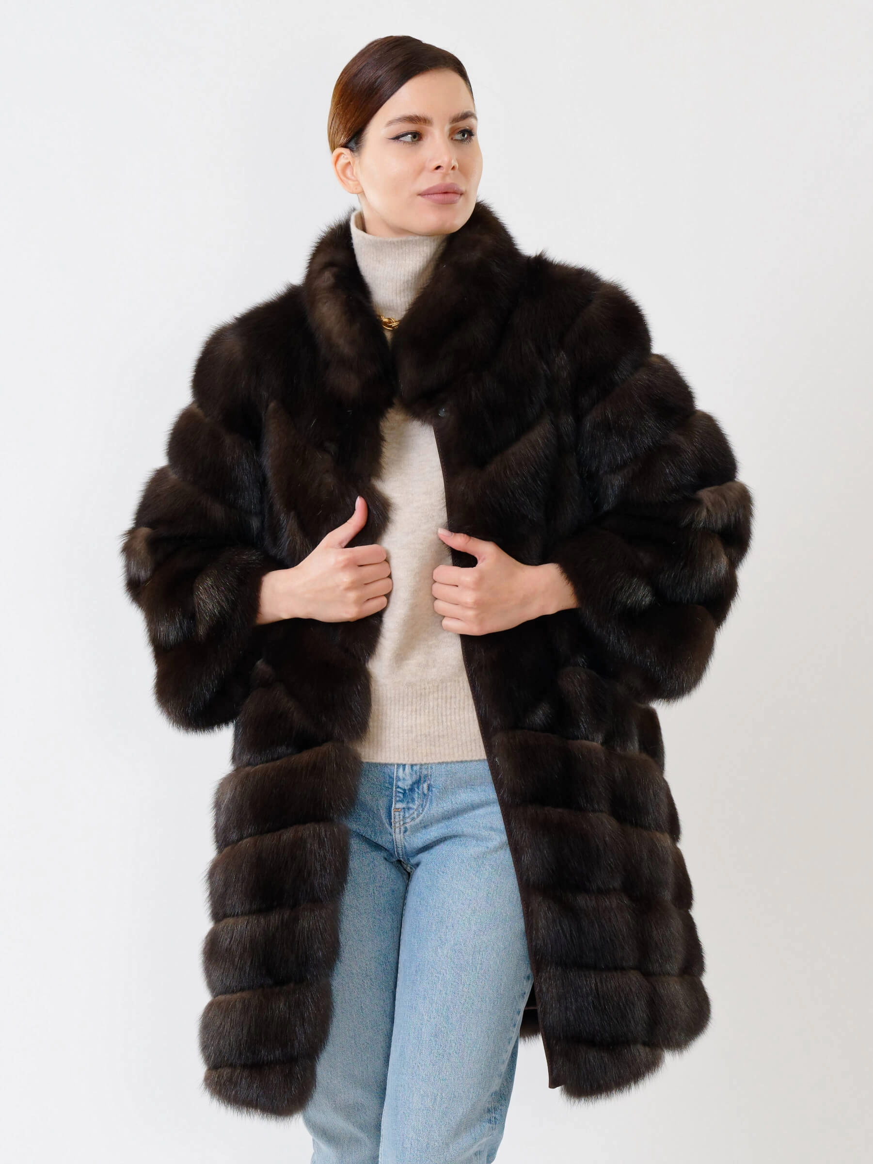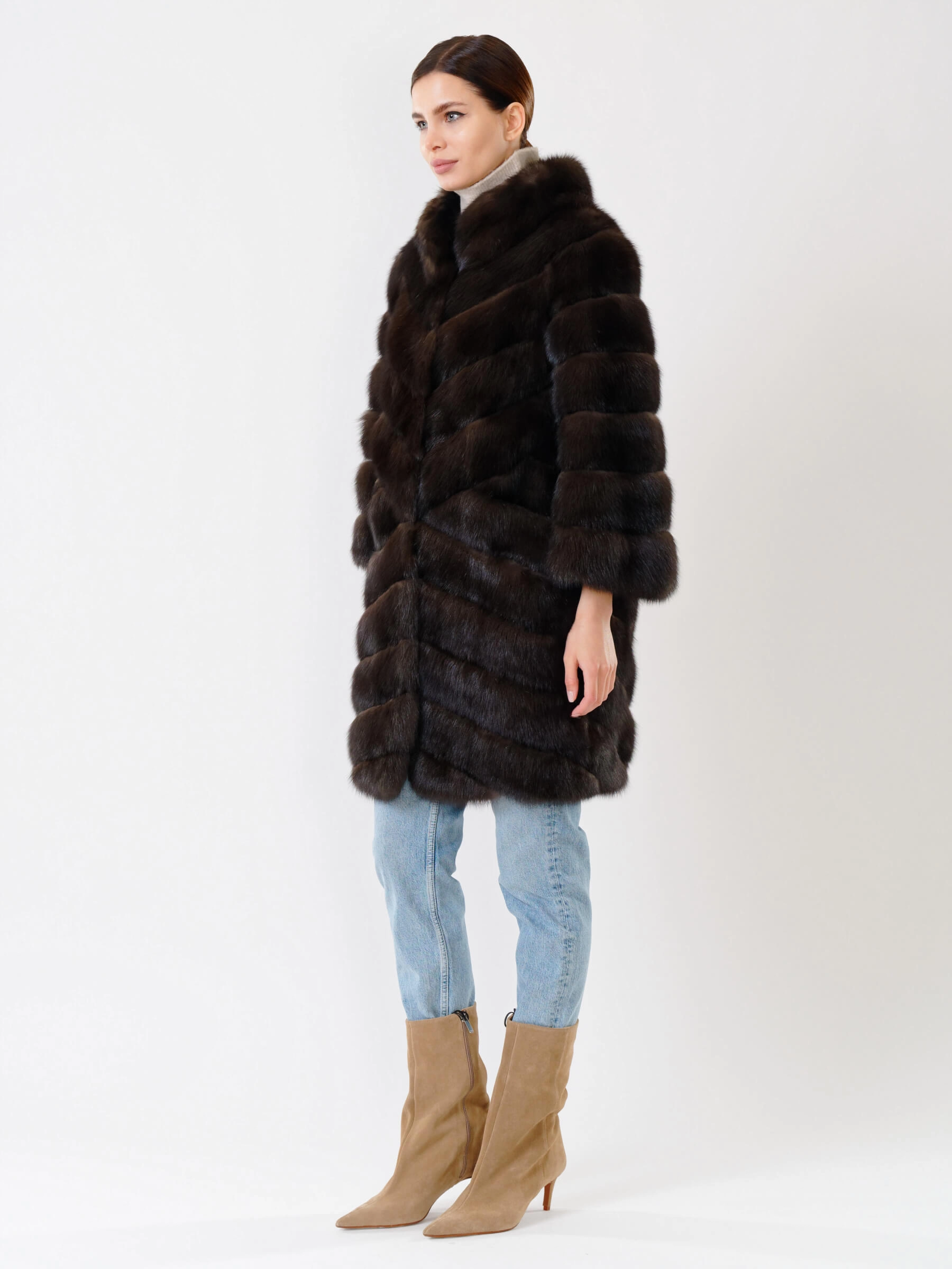 Женская шуба премиум класса из меха соболя 1908, коричневая, размер 46, артикул 19080