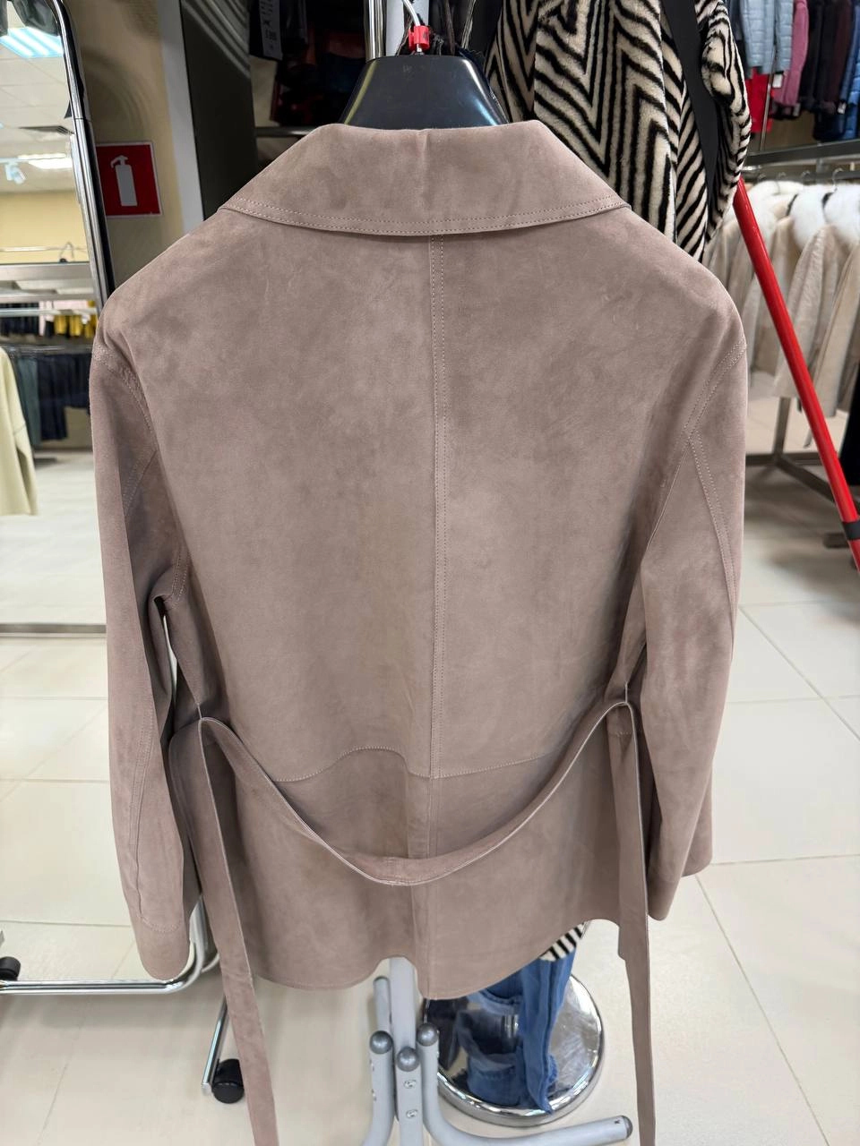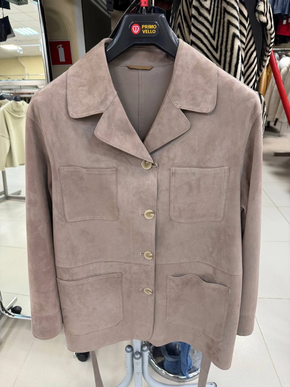 Товар женская замшевая бежевая куртка пиджак премиум класса 3092з, размер 46, артикул 92650 выполнен из натуральной кожи с застежкой пуговицы. Рассчитан на сезон: весна-лето. Длина изделия 74 см, силуэт прямой.