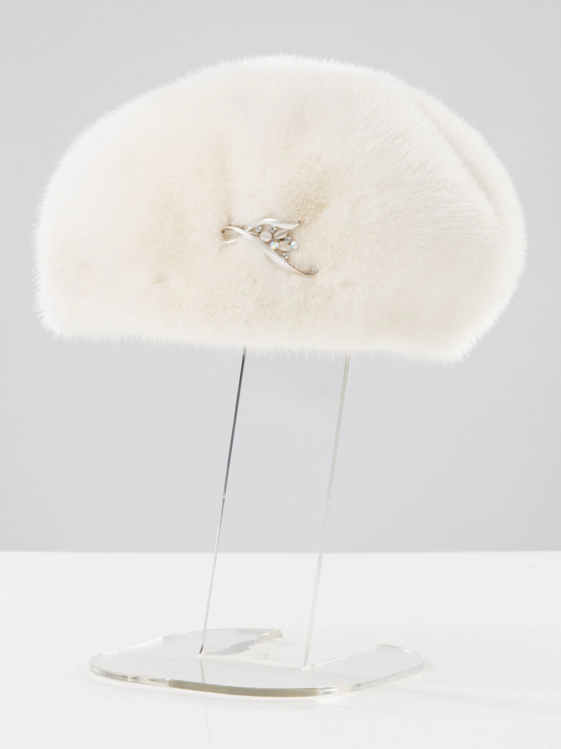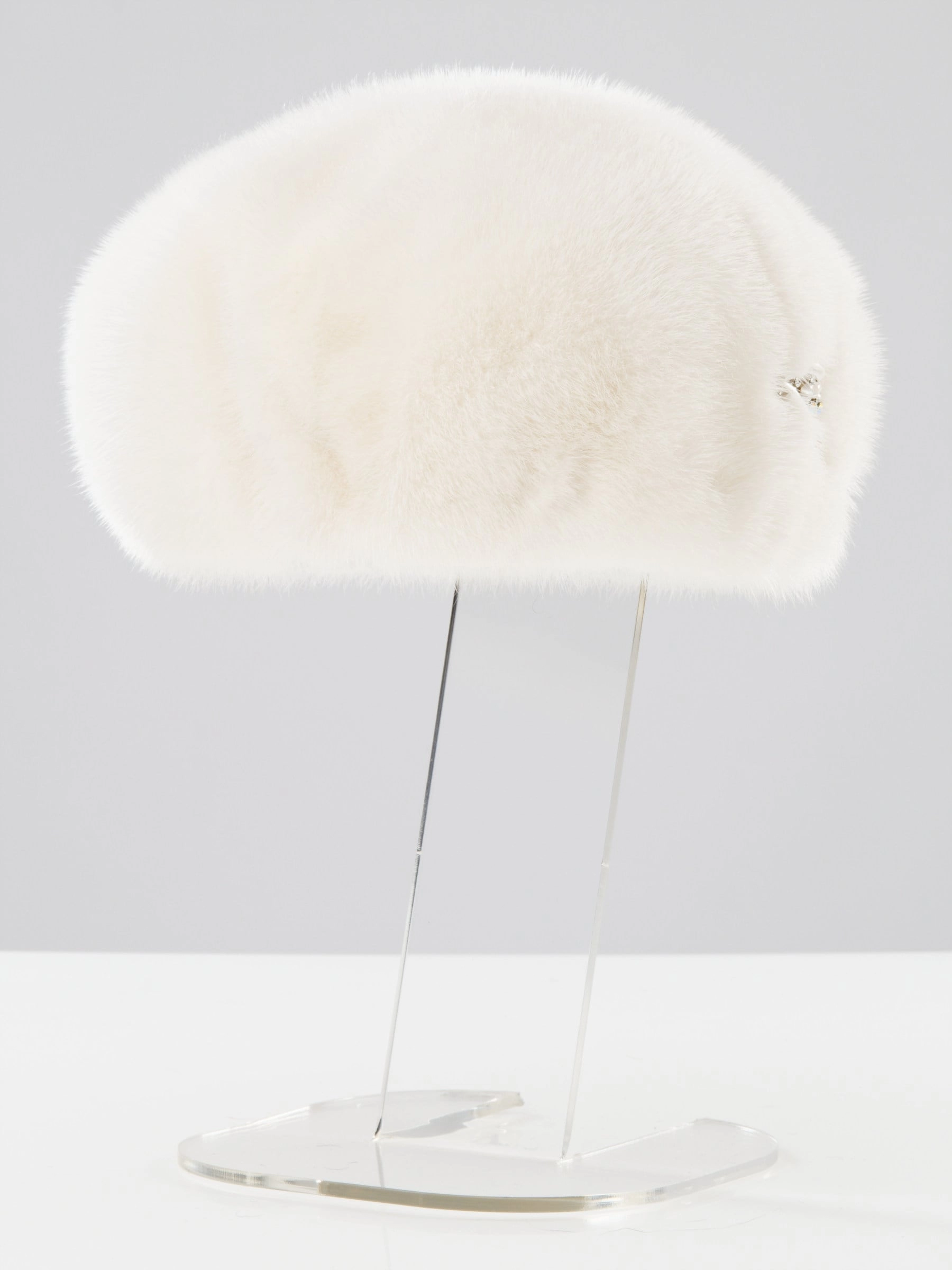 Головной убор из меха норки женский Берет, белый, размер 58, артикул 50670
