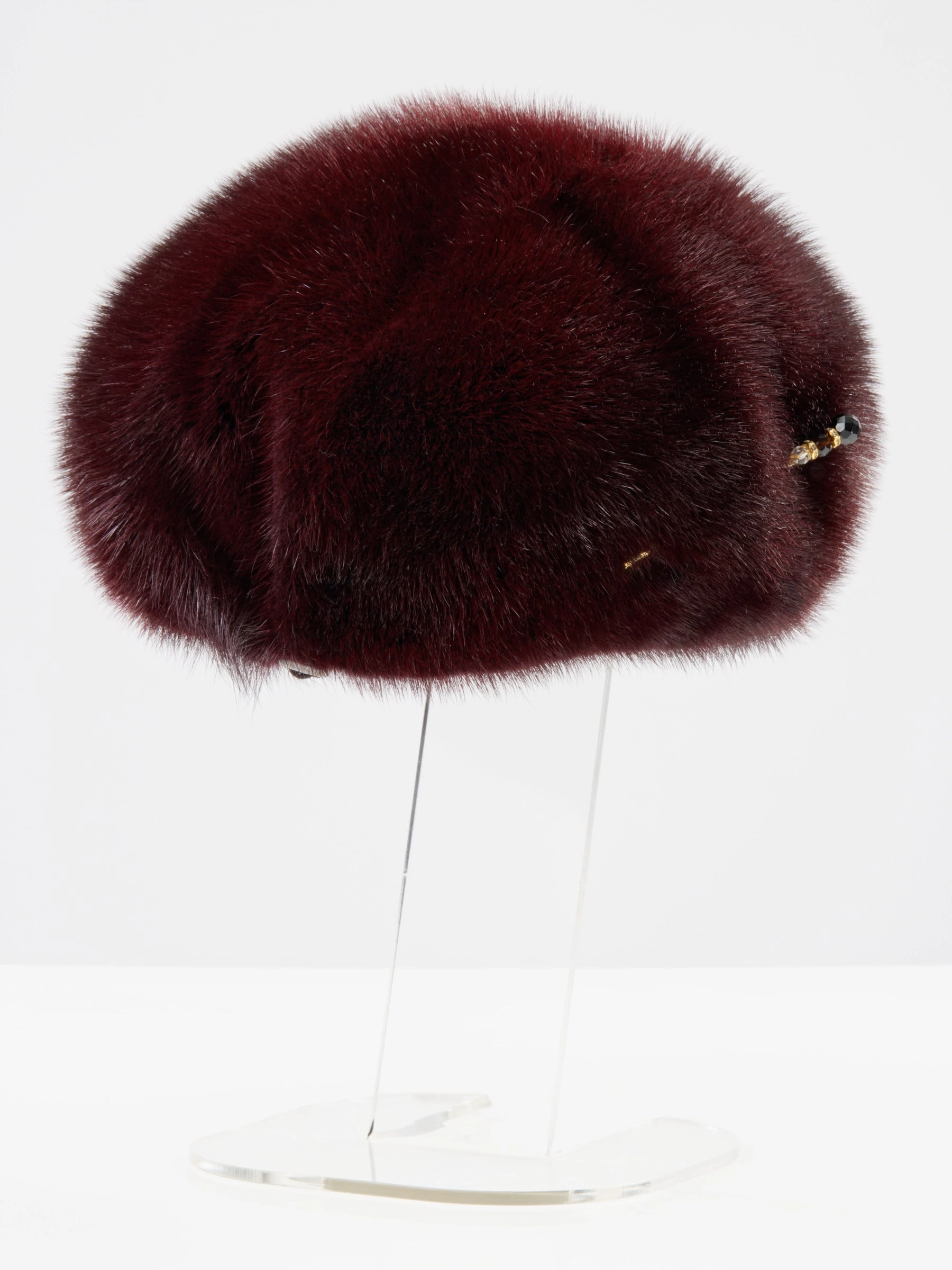 Головной убор из меха норки женский Берет, бордовый, размер 58, артикул 50610