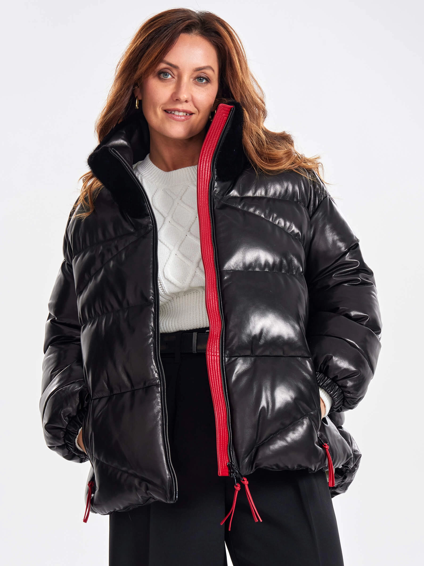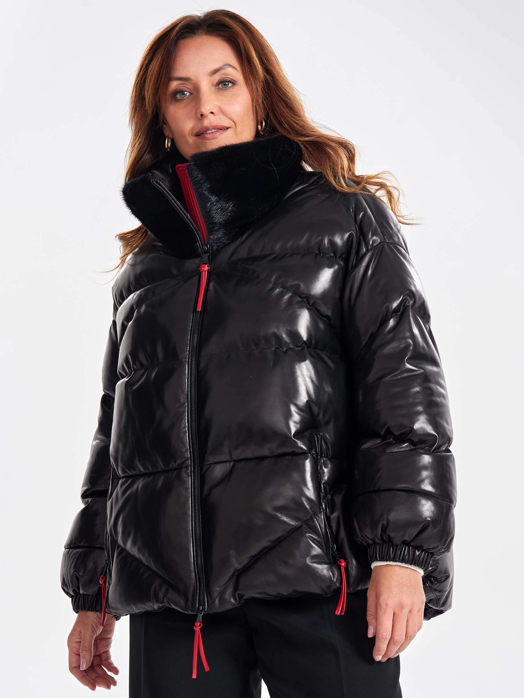 Короткий пуховик из натуральной мягкой кожи премиум класса станет отличным спутником для прогулок в холодную погоду. Немецкий утеплитель синтепон Френденберг равномерно распределен по асимметричным стеганым камерам. Отличная теплоизоляция, превосходная паропроницаемость, простой уход. Объемную модель с внутренними кулисками дополнили высоким воротником-стойка из нежного меха норки. Глубокие врезные карманы как и само изделие застегиваются крупными молниями.