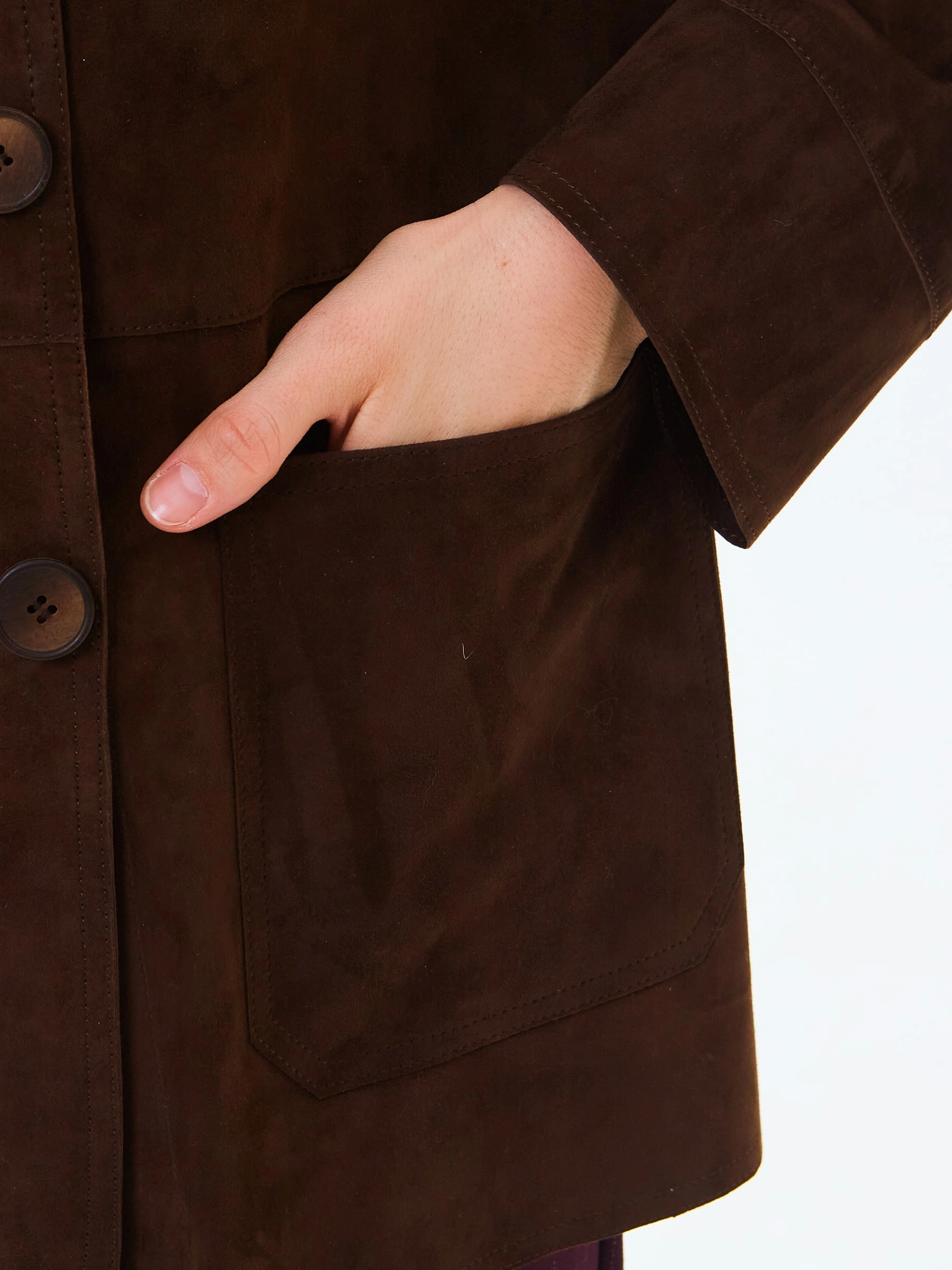 Товар женский замшевый пиджак премиум класса 3092з, коричневый, размер 44, артикул 24640 выполнен из натуральной кожи с застежкой пуговицы. Рассчитан на сезон: весна-лето. Длина изделия 74 см, силуэт прямой.