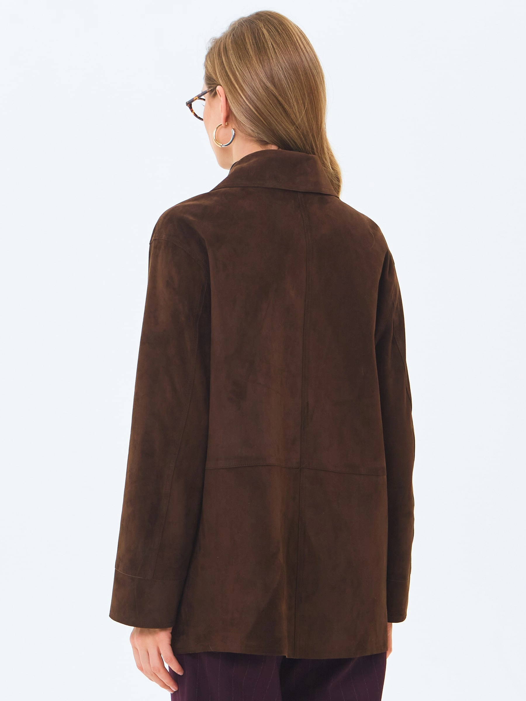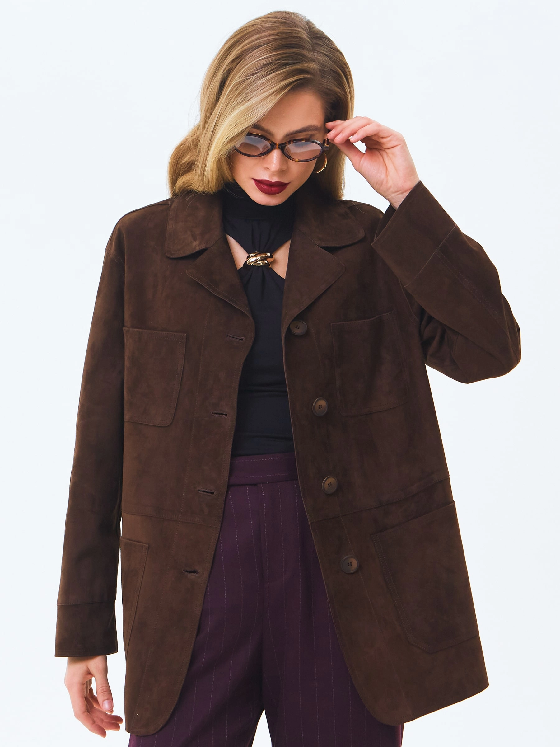 Женский замшевый пиджак премиум класса 3092з, коричневый, размер 44, артикул 24640