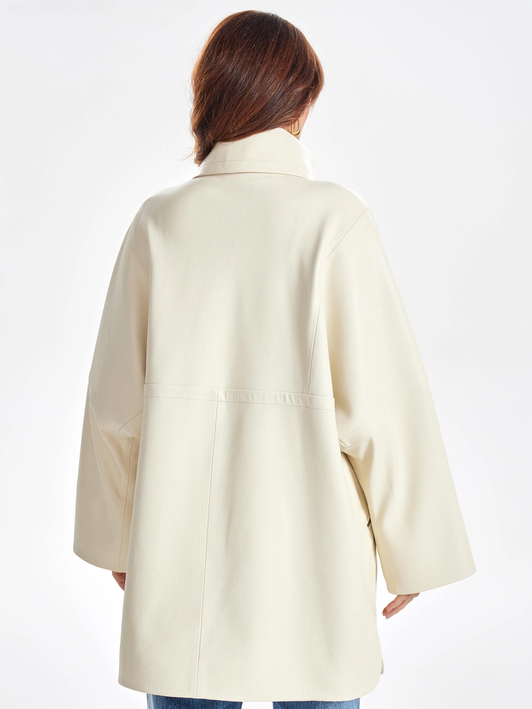 Женское кожаное полупальто оверсайз премиум класса 3057, белое, размер 50, артикул 64030