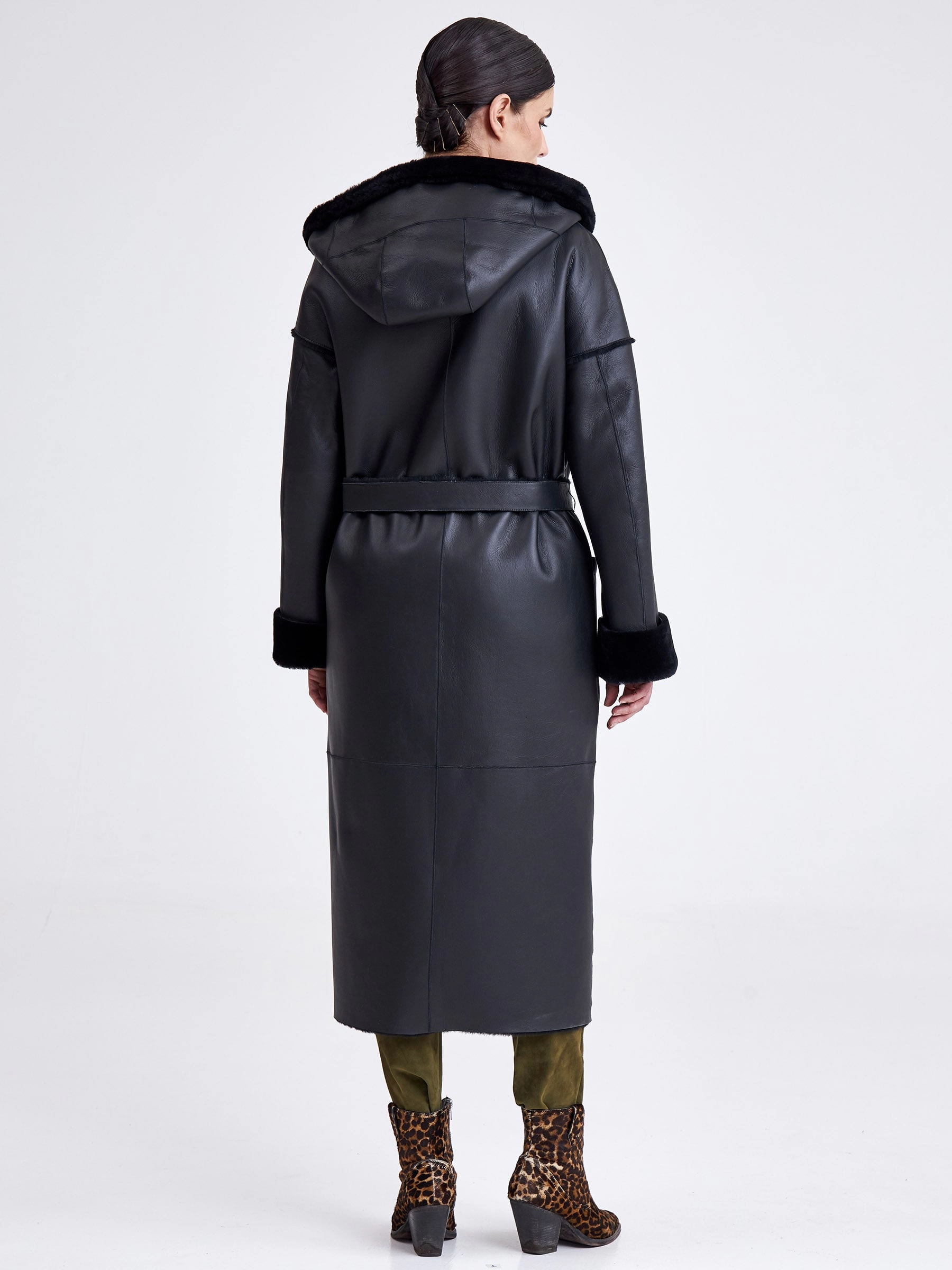 Пальто считается одним из самых популярных и практичных видов верхней одежды. Для изготовления этой удлинённой модели (свыше 90 см) наши мастера использовали плотную овчину тонкой выделки, которая отлично сохраняет тепло. Изделие прямого кроя с идеальной посадкой по фигуре дополнено глубоким капюшоном и парой накладных карманов, а застёгивается оно на классические пуговицы. Стилистически эта модель относится к уютному городскому минимализму с утилитарным акцентом — её лаконичный силуэт, натуральная фактура и функциональные детали создают образ, балансирующий между повседневным шиком и практичным комфортом. Совет стилиста: сочетайте пальто с объёмным свитером, прямыми джинсами и ботильонами для сдержанного casual-образа или наденьте поверх платья-миди с поясом, чтобы добавить женственности и контраста текстур.