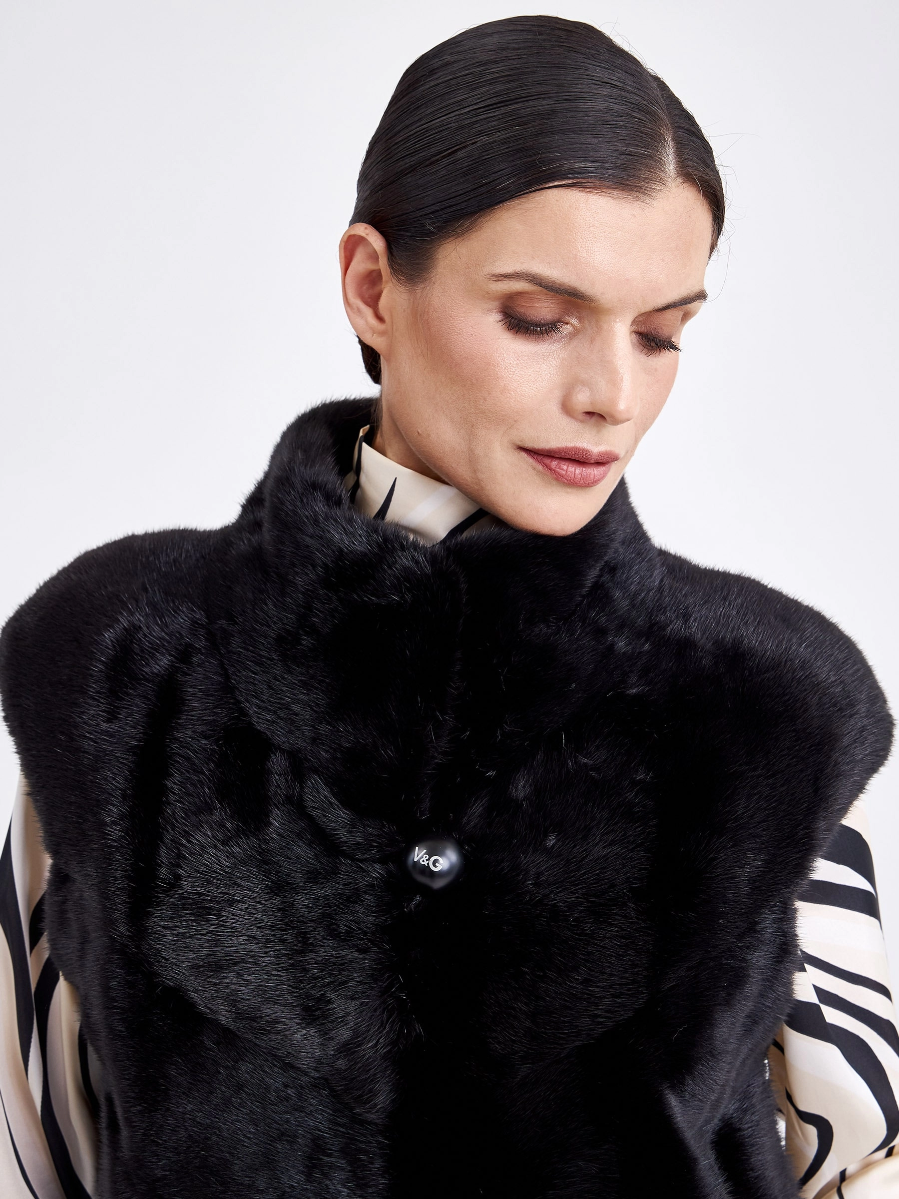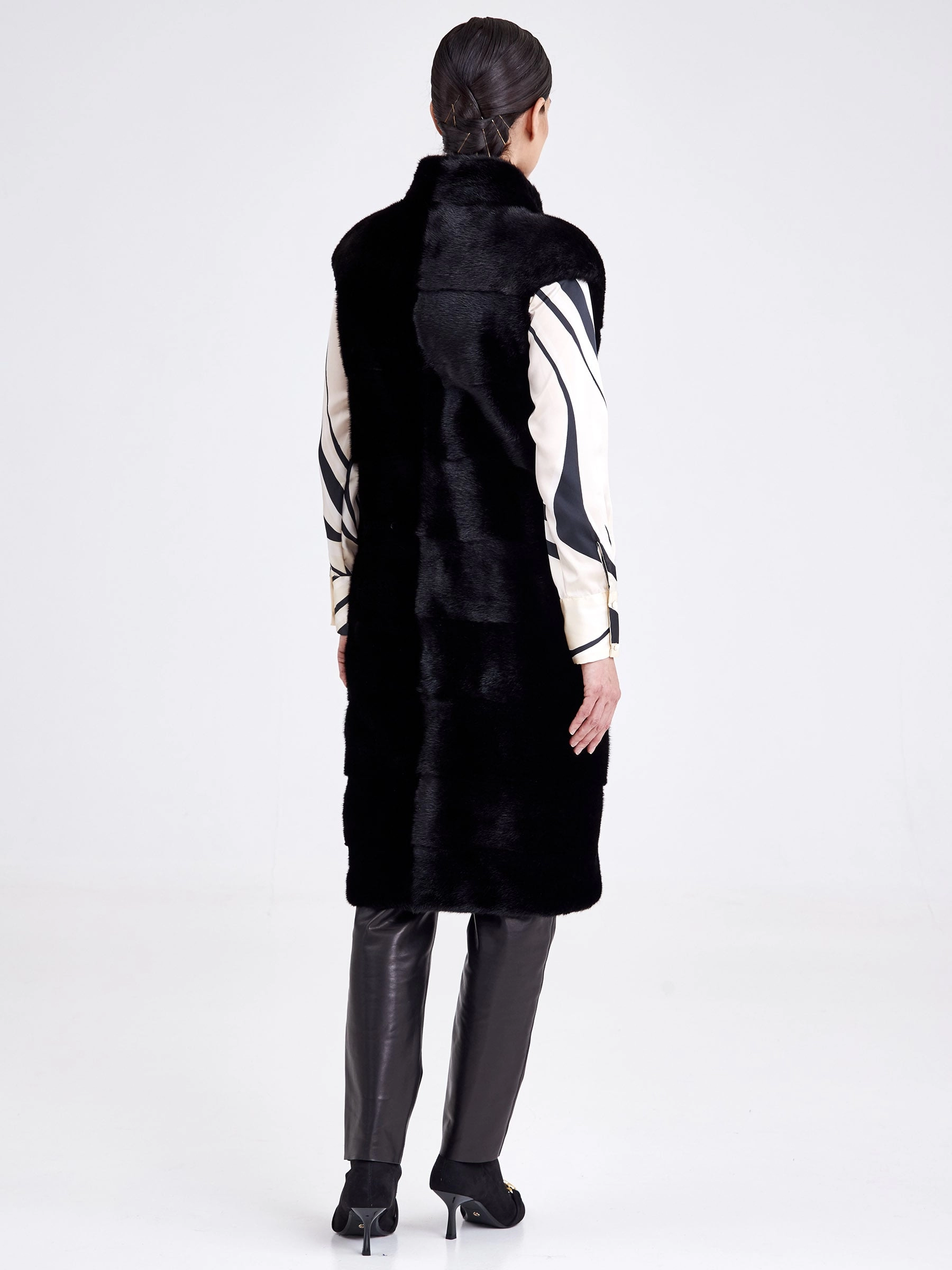 Длинный женский жилет из меха норки 2850(с), черный, размер 44, артикул 33210