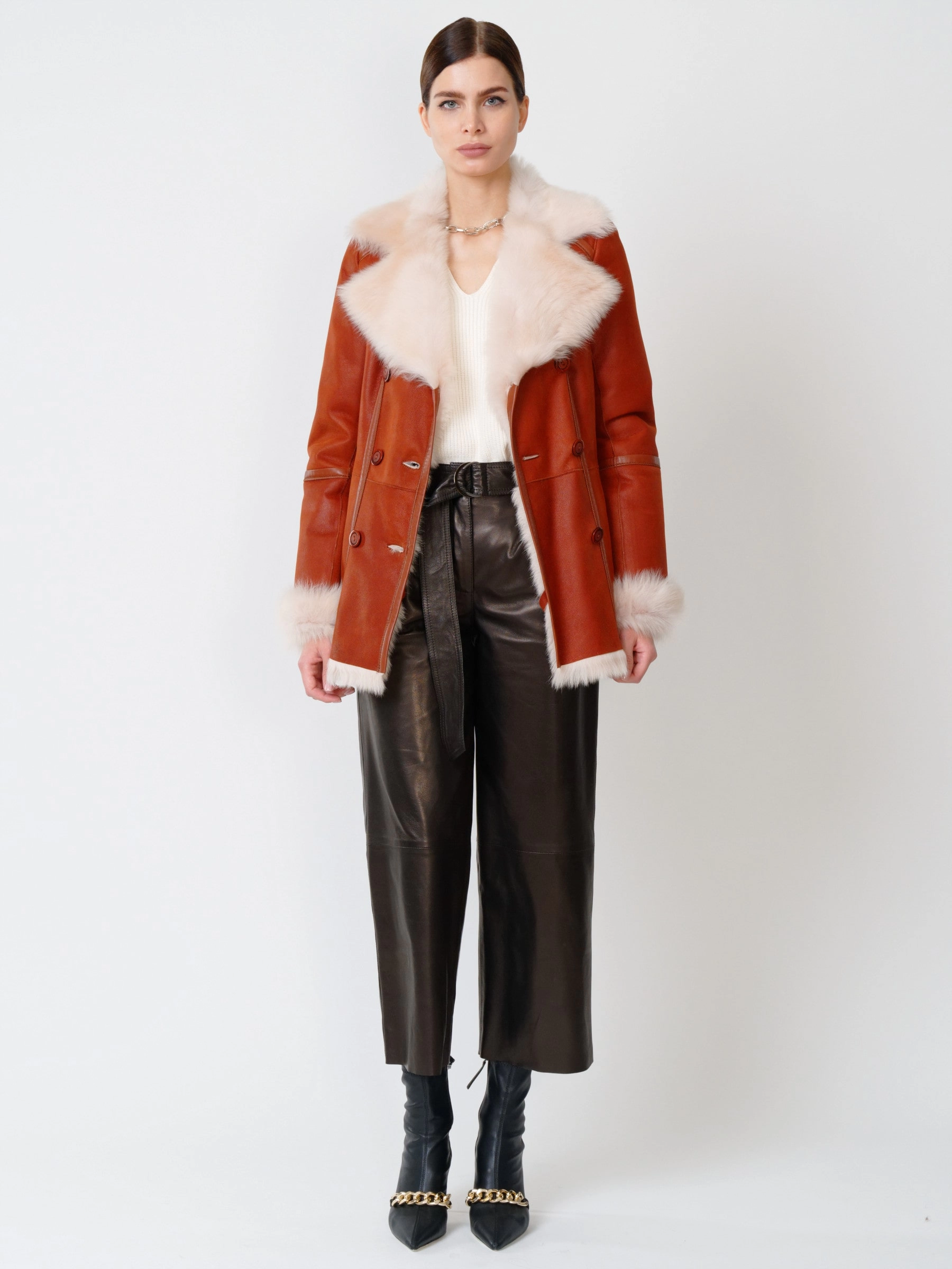 Самое время подготовить свой гардероб к зиме. Классическая дубленка из тосканской овчины легко справится с русскими морозами. Дубленка получилась уютной и теплой. Отличное сочетание составят широкие брюки из натуральной кожи. Безупречная элегантность и актуальная классика. Великолепная посадка. Качество в каждой строчке.
