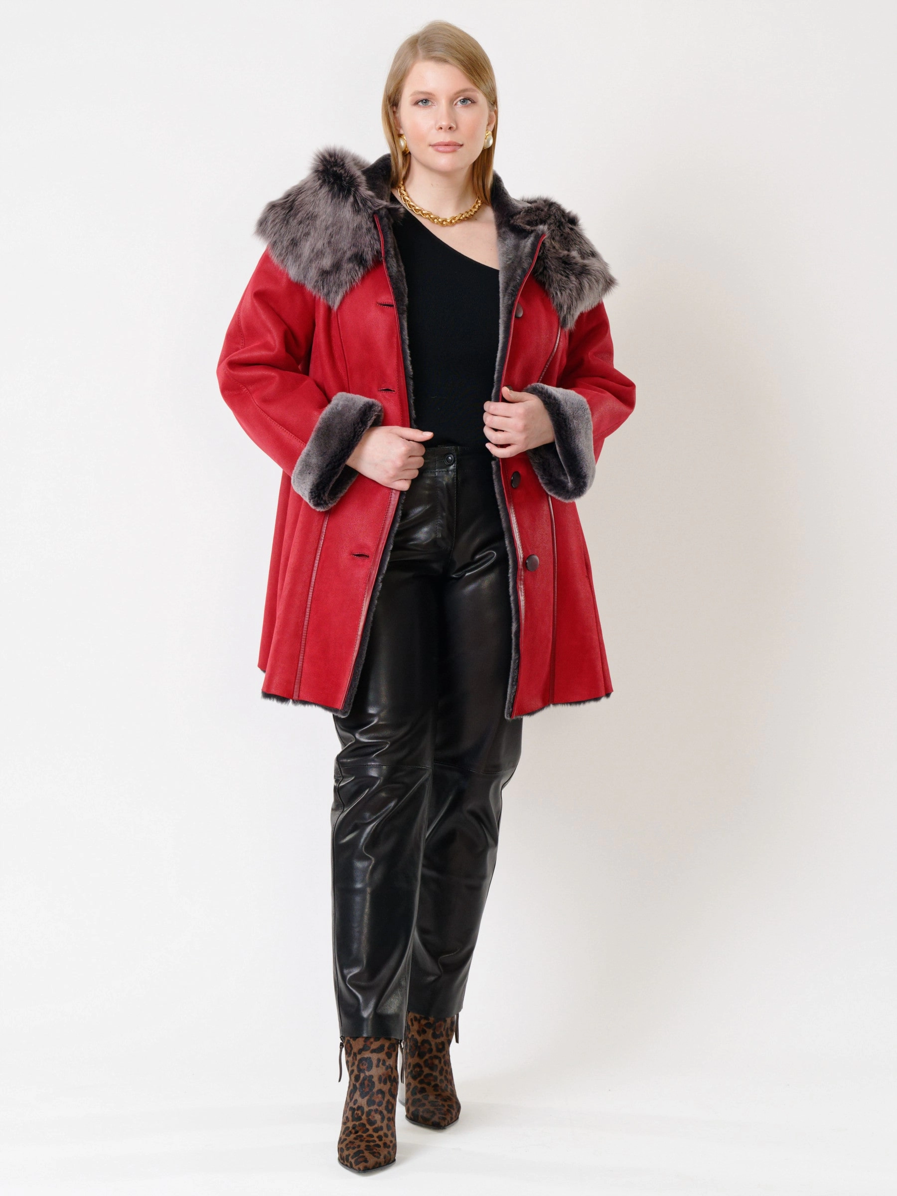 Зимний комплект женский: Дубленка 270 + Брюки 03, красный/черный, р. 46, арт. 111241