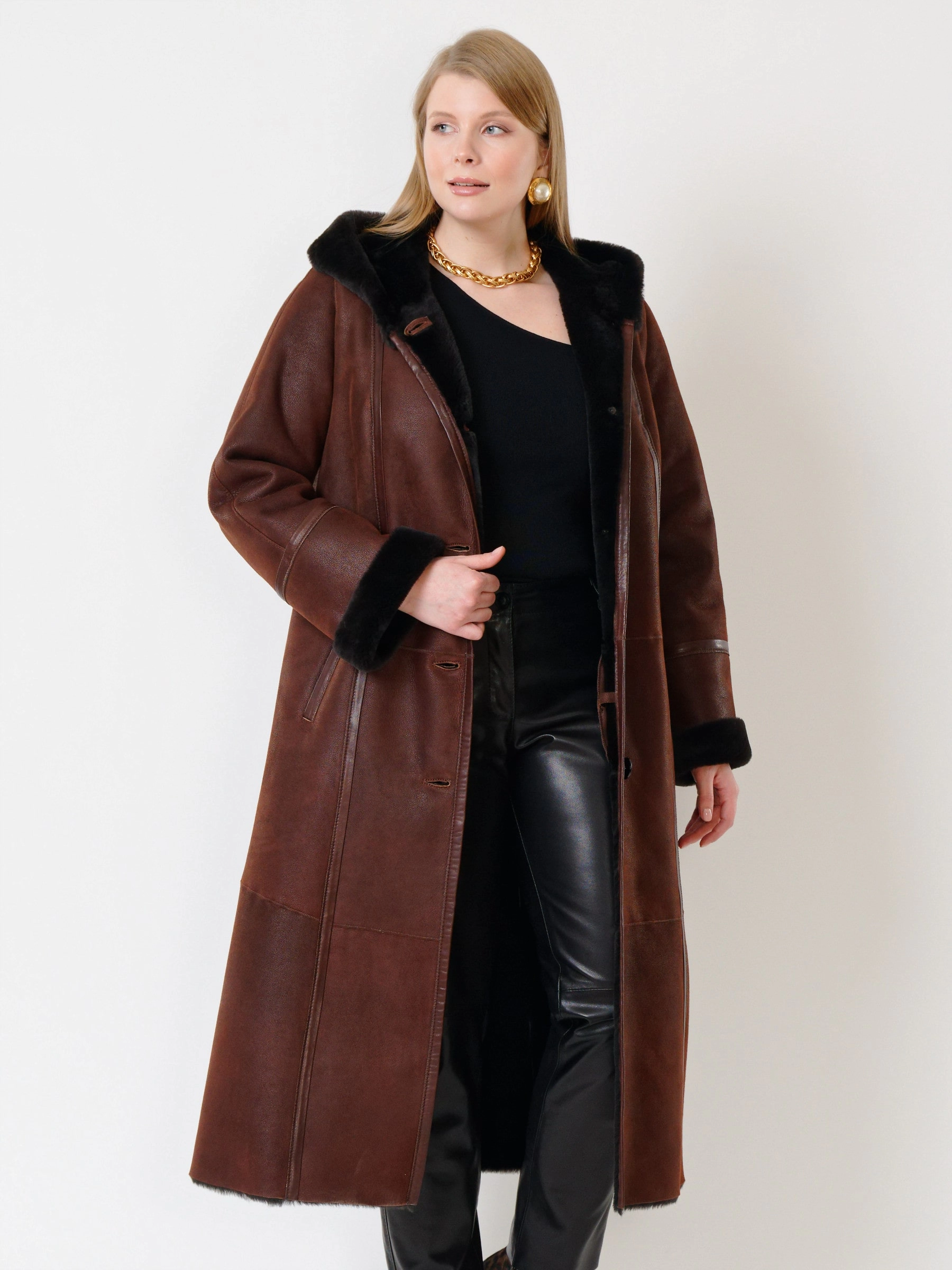 Зимний комплект женский: Дубленка 285 + Брюки 03, виски/черный, р. 48, арт. 111221