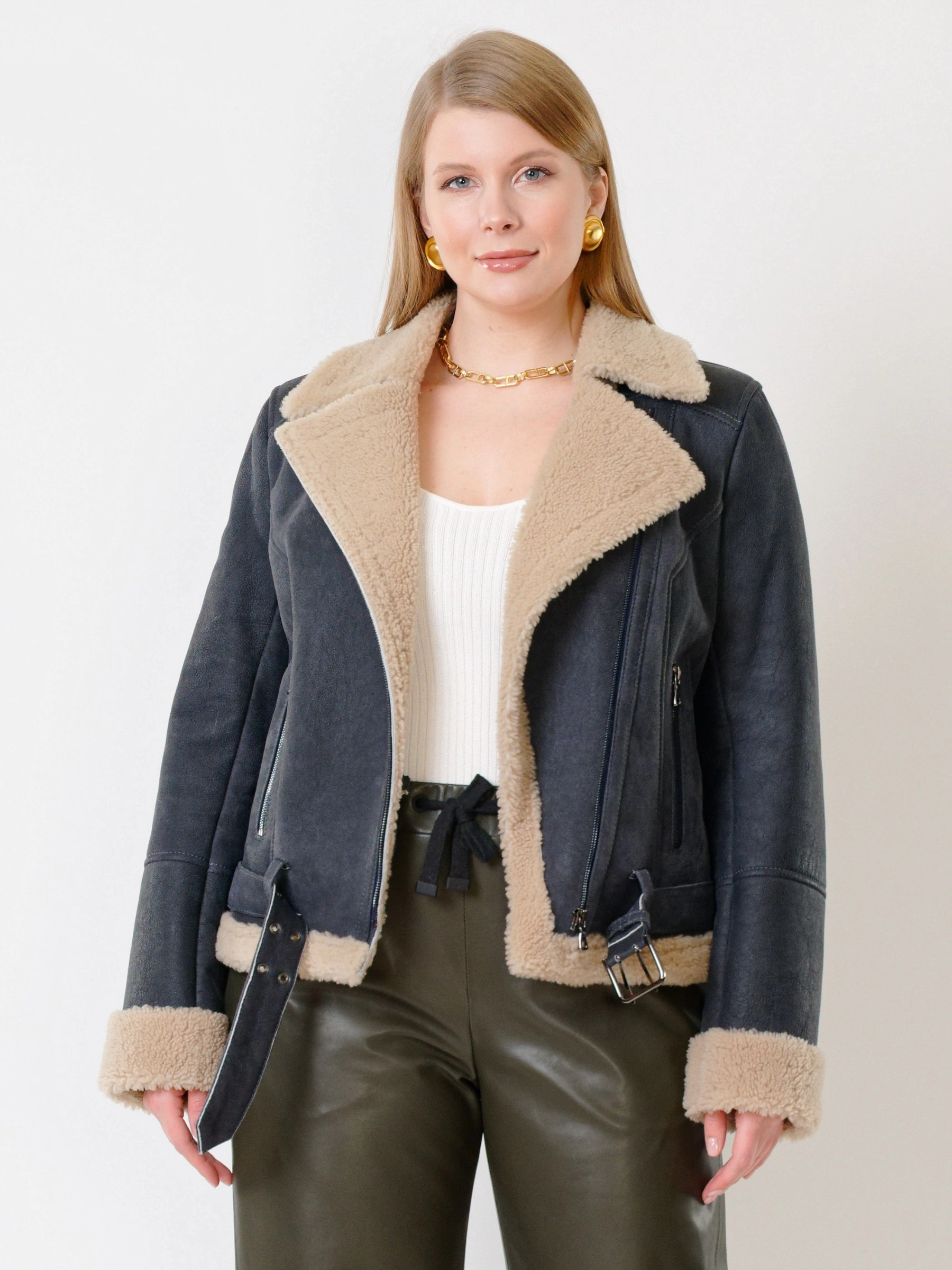 Зимний комплект женский: Дубленка 201 + Брюки 06, синий/оливковый, р. 48, арт. 111352