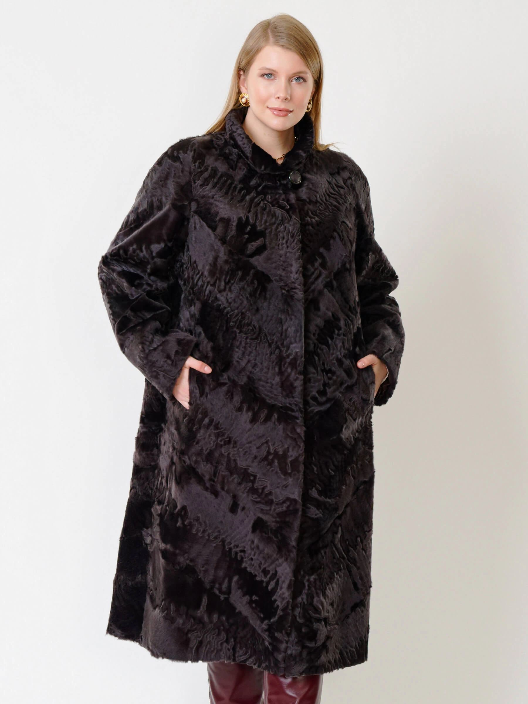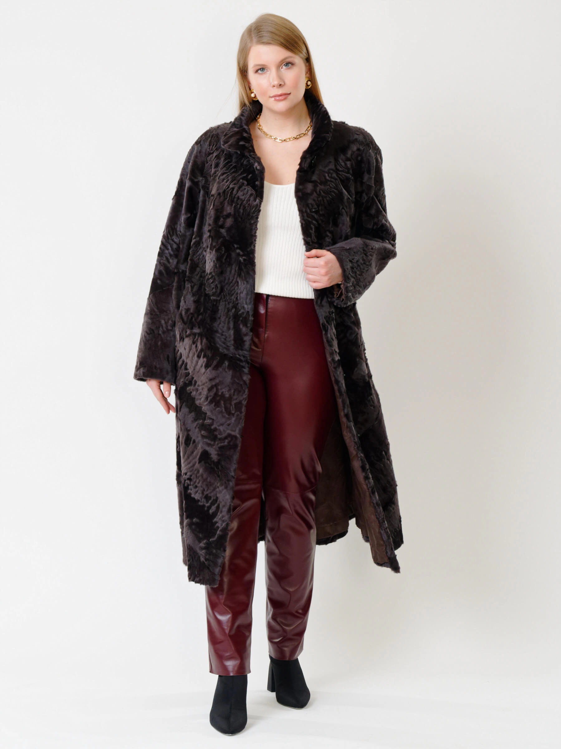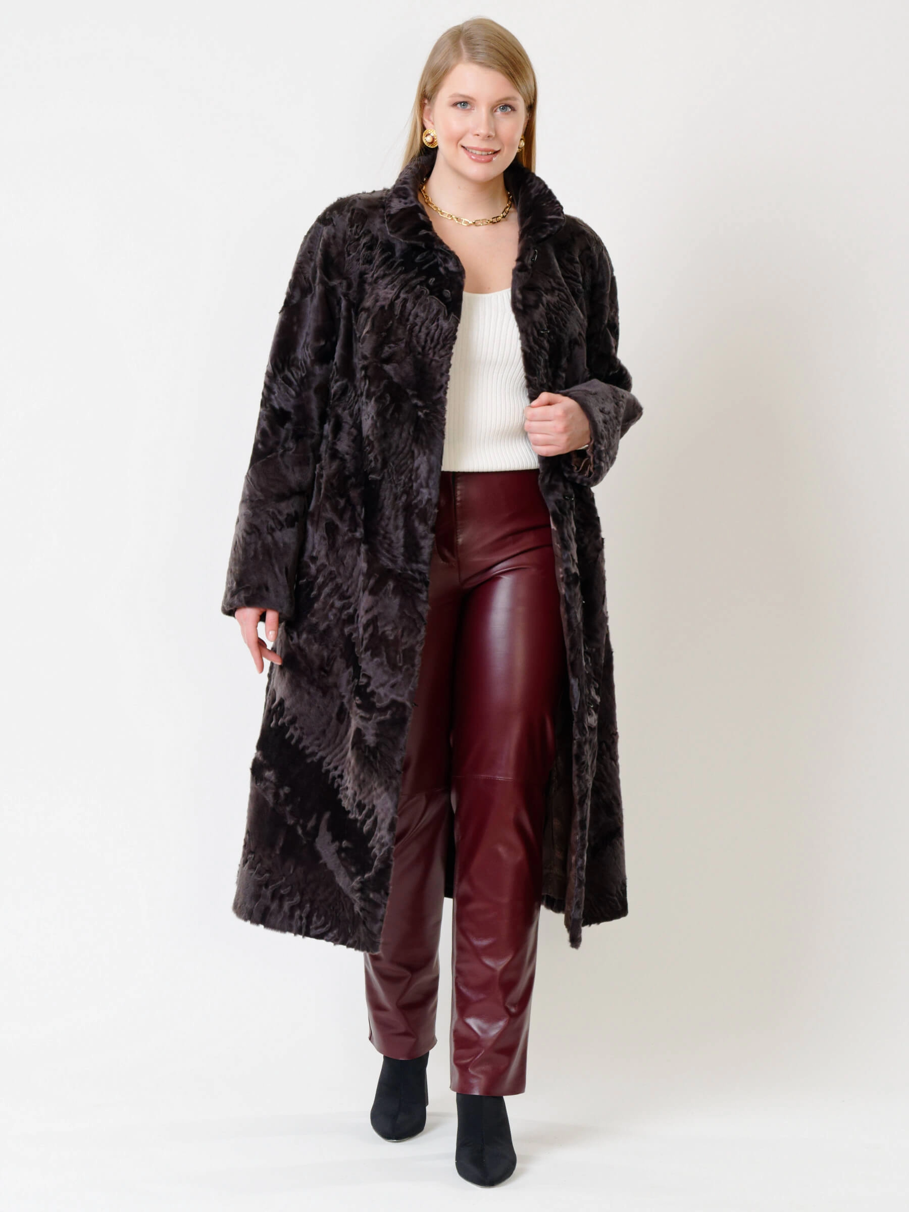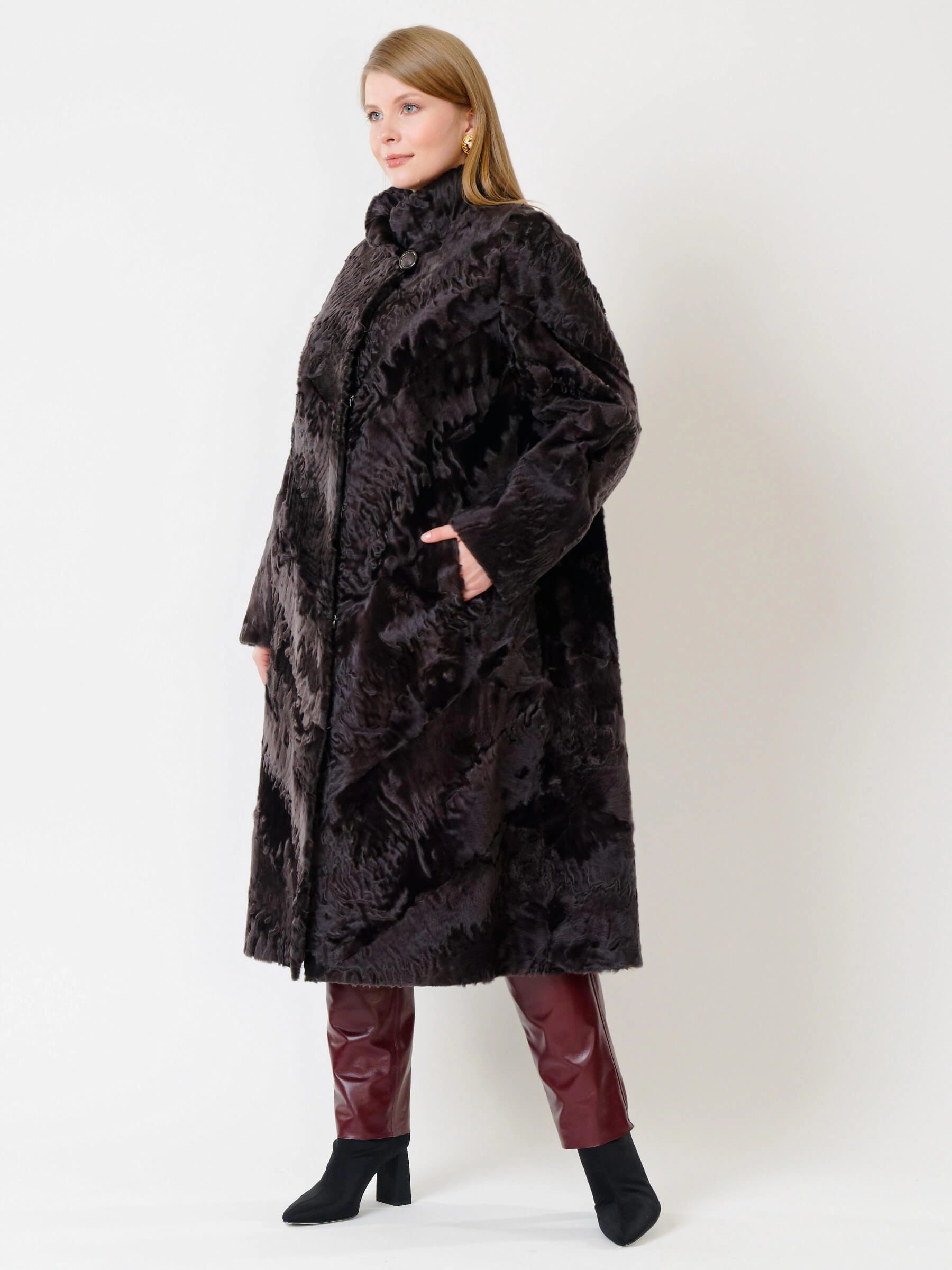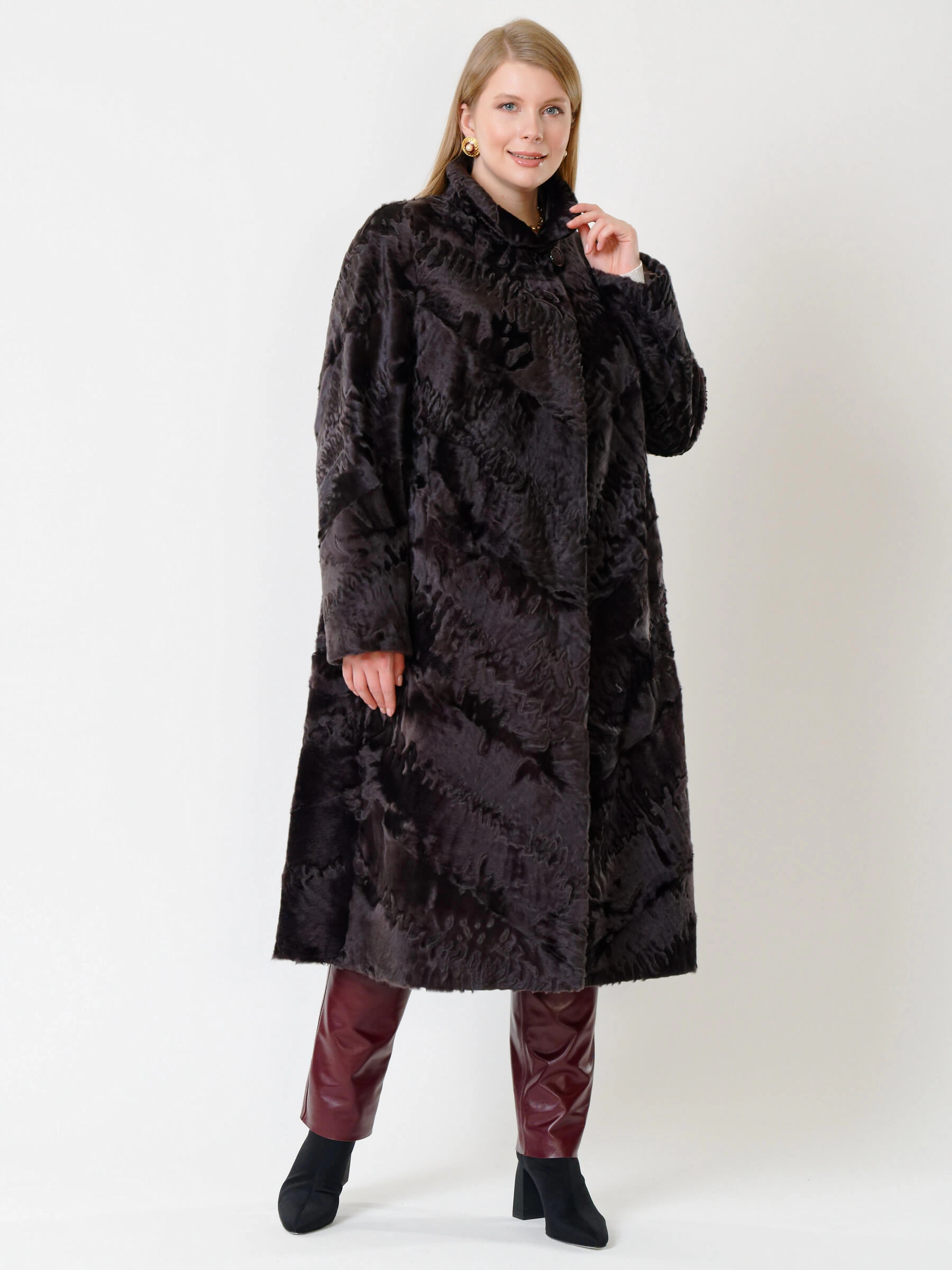 Товар зимний комплект женский: шуба из каракуля елизавета(с) + брюки 02, коричневый/бордовый, р. 56, арт. 111305.