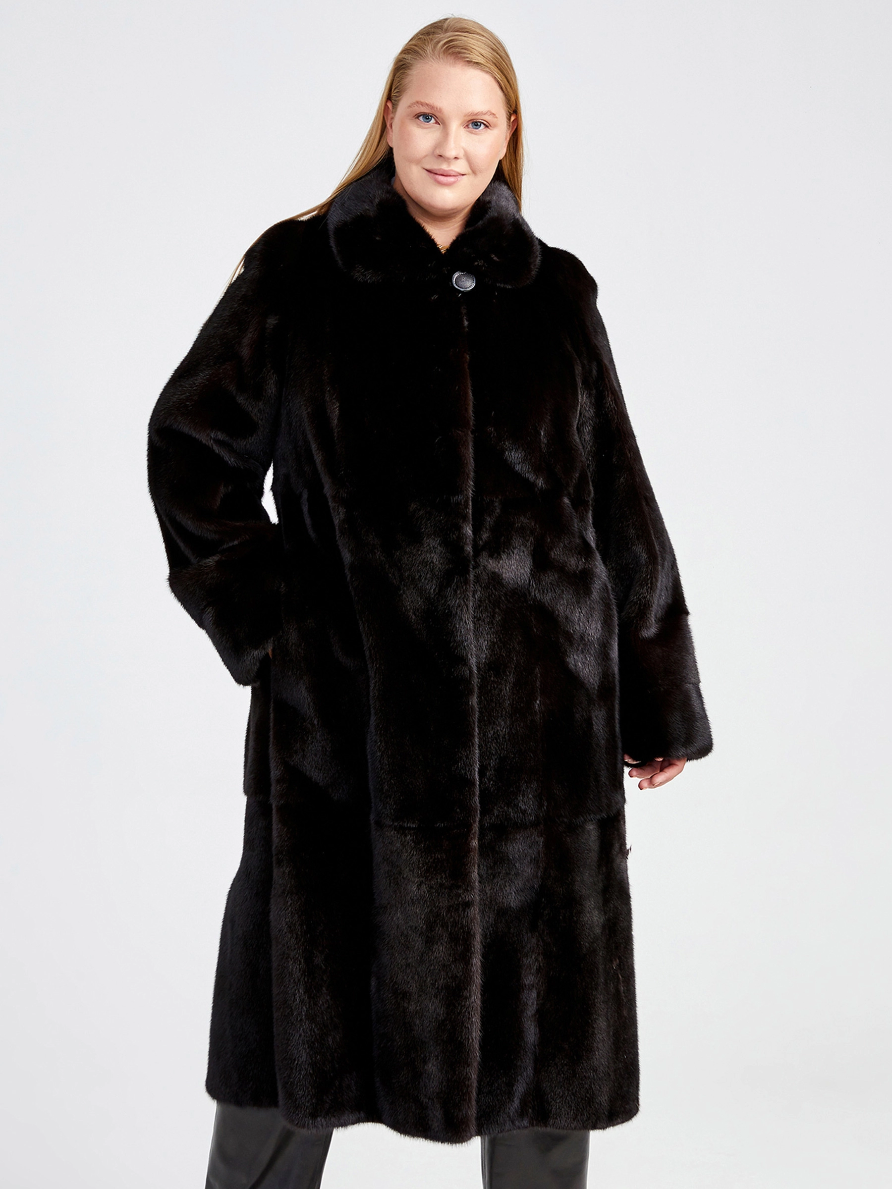 Зимний комплект женский: Шуба из меха норки Елизавета(в) + Брюки 04, черный, р. 52, арт. 111358